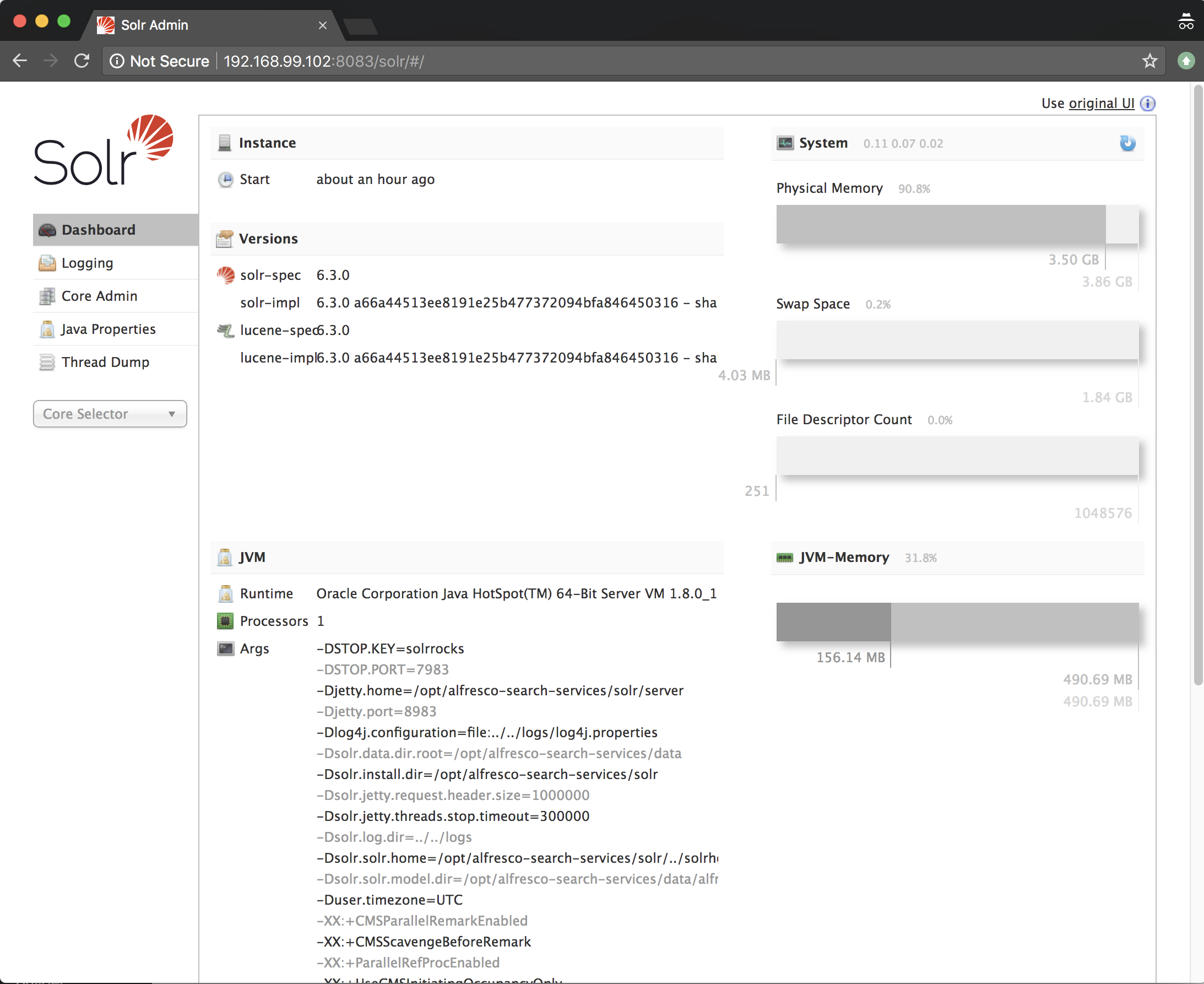 Alfresco Search Services: http://DOCKER_HOST_IP:8083/solr